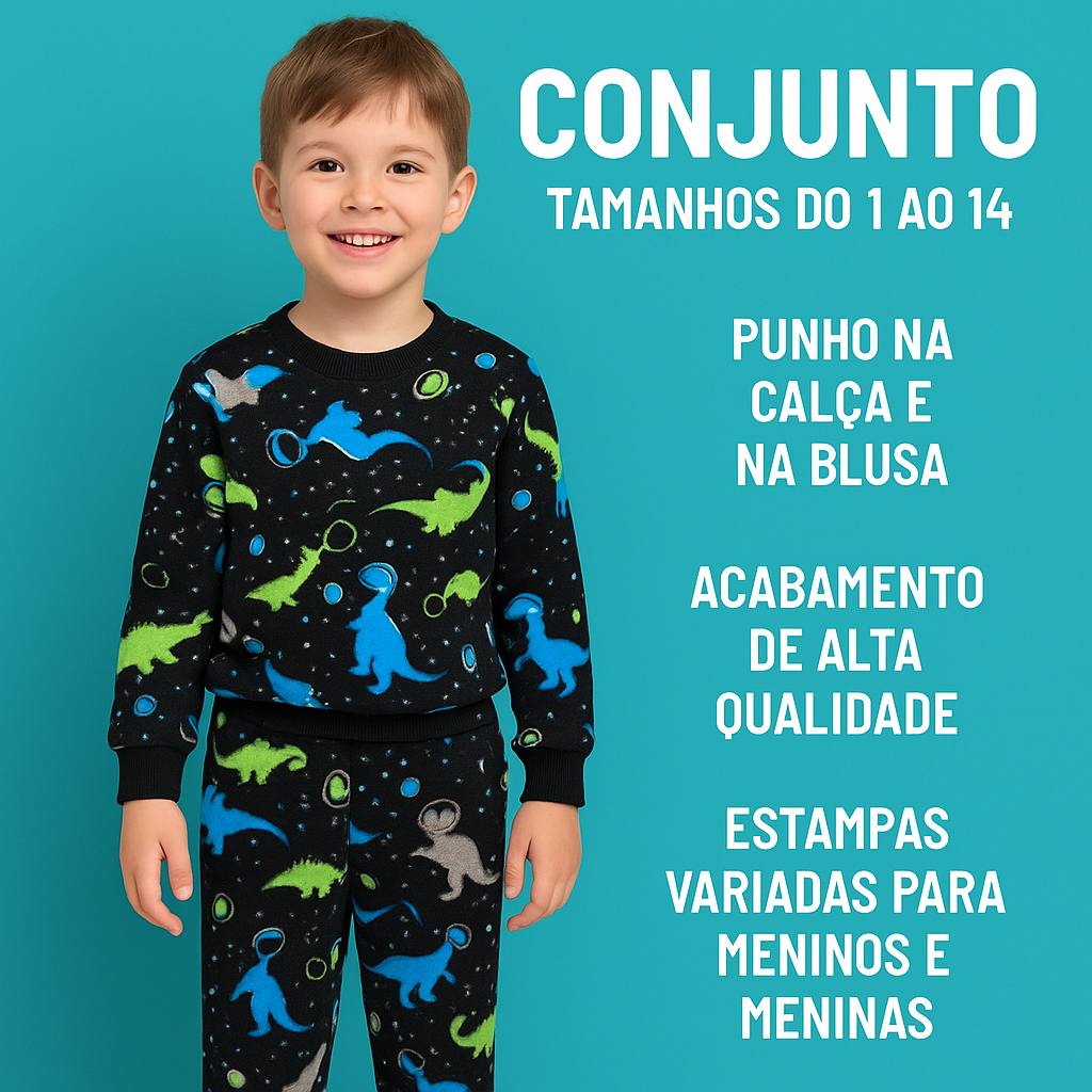 CONJUNTO DE FLEECE PELUCIADINHO DE INVERNO PIJAMA DE DORMIR QUENTINHO 1 AO 14 MENINOS E MENINAS
