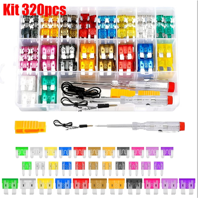 Conjunto de Fusíveis Automotivos com Chave de Teste e Mini Fusível 320pcs