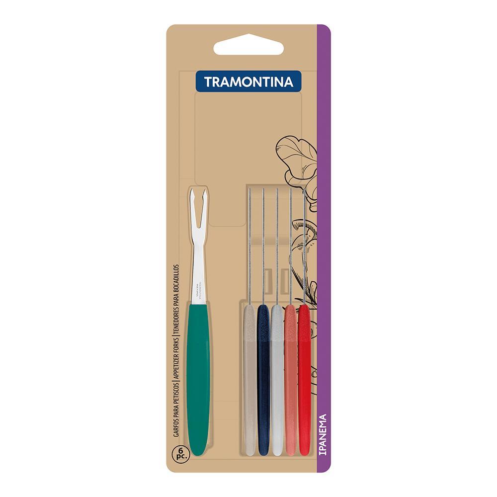 Conjunto de Garfos para Petiscos Tramontina Ipanema 6 Peças Colorido, em Aço Inox e Cabo de Polipropileno - 23399/410