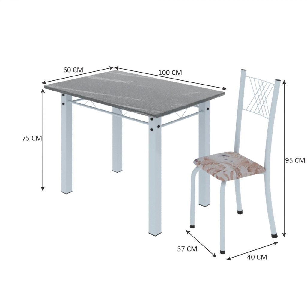 Conjunto de Jantar Mesa 100x60cm Tampo de Granito Topázio com 4 Cadeiras Sara Yescasa Botanic Bege/Branco