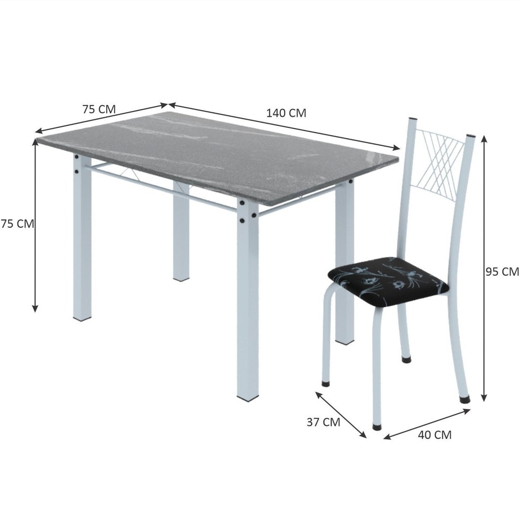 Conjunto de Jantar Mesa 140x75cm Tampo de Granito Topázio com 6 Cadeiras Sara Yescasa Branco/Preto Floral