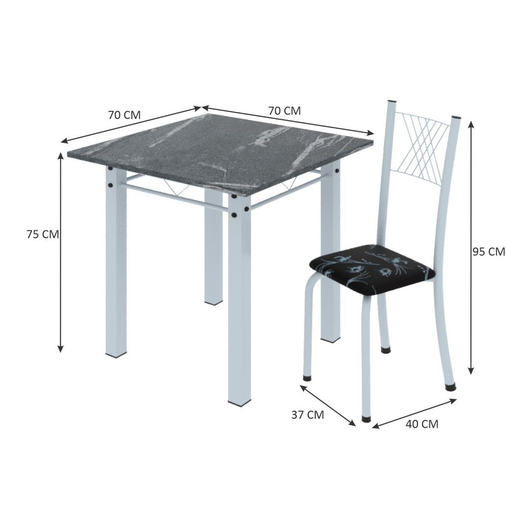 Conjunto de Jantar Mesa 70x70cm Tampo de Granito Topázio com 4 Cadeiras Sara Yescasa Branco/Preto Floral