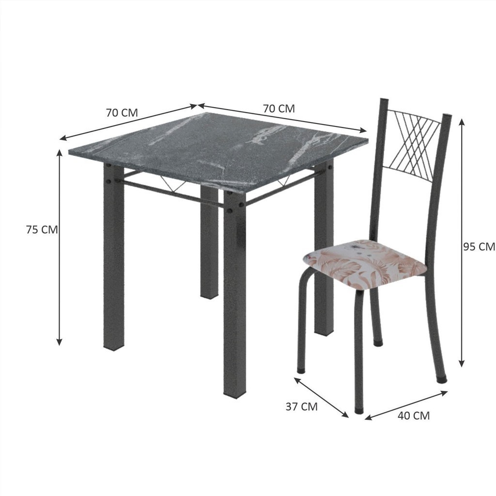 Conjunto de Jantar Mesa 70x70cm Tampo de Granito Topázio com 4 Cadeiras Sara Yescasa Martelado Prata/Botanic Bege