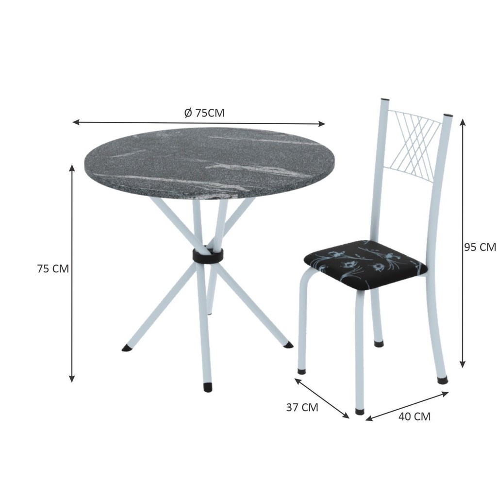 Conjunto de Jantar Mesa Tampo Redondo de Granito Topázio com 4 Cadeiras Sara Yescasa Branco/Preto Floral
