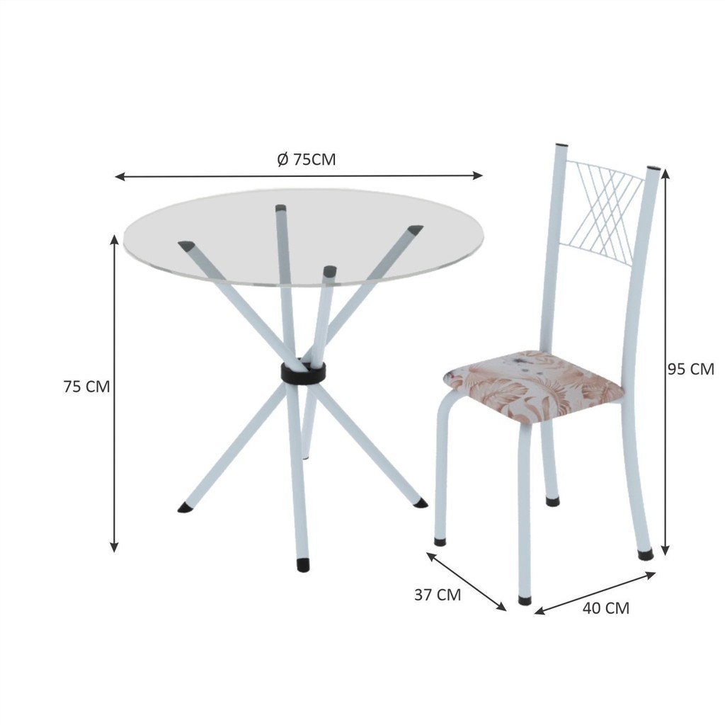 Conjunto de Jantar Mesa Tampo Redondo de Vidro Incolor com 4 Cadeiras Sara Yescasa Botanic Bege/Branco