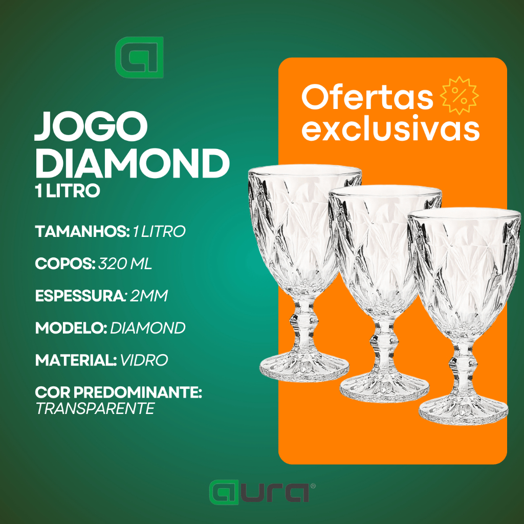 Conjunto De Jarra 1L Com 6 Taças 300ml Diamond