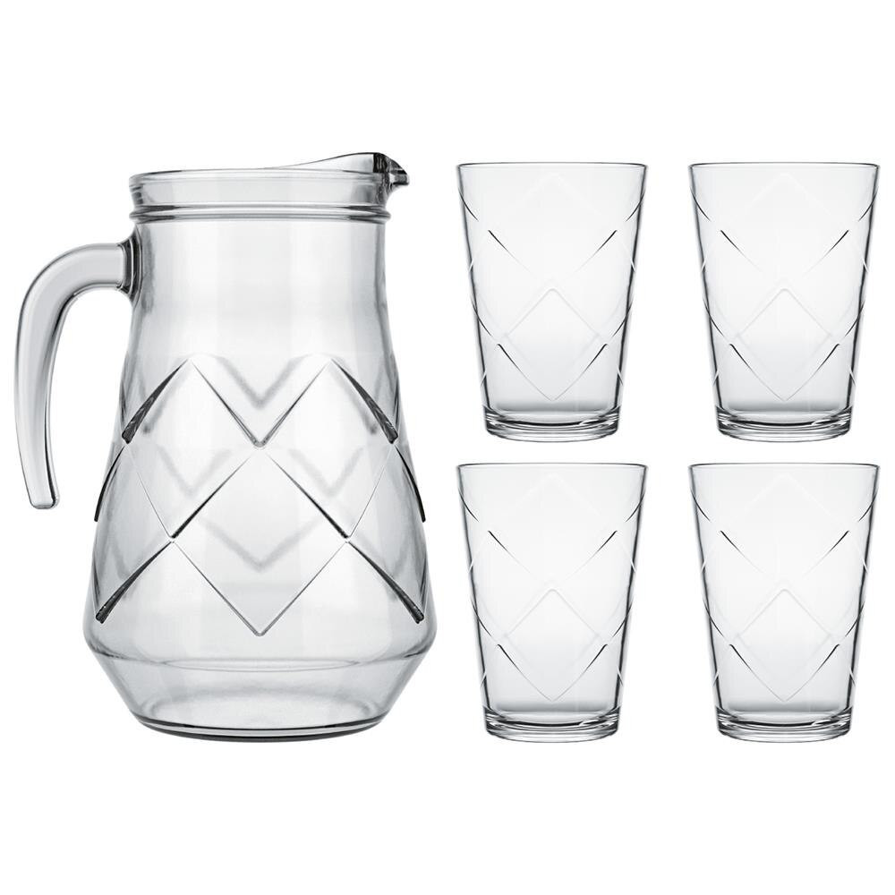 Conjunto de Jarra e Copos Maracatu em Vidro, 5 Peças Nadir