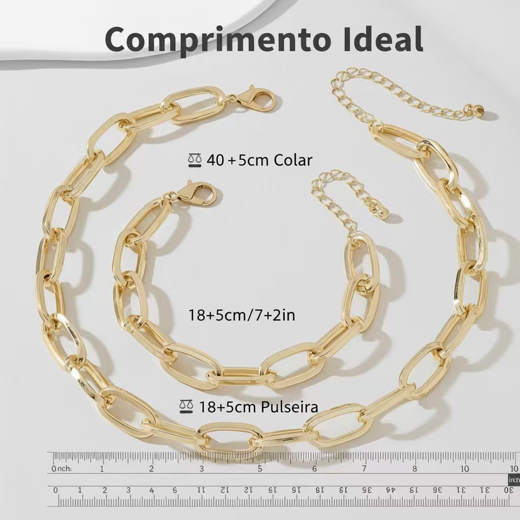 | Conjunto de Joias Femininas em Ouro 18K – Colar e Pulseira Retangul... este produto | R$ 14,22 | 70% | 4.8/5 | 4 |