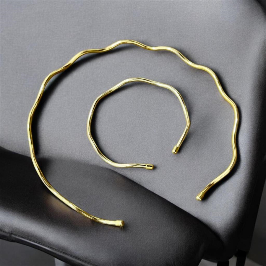 Conjunto De Joias Prateadas E Douradas – Gargantilha Pulseira Ajustáveis , Presente Elegante Para Mulheres