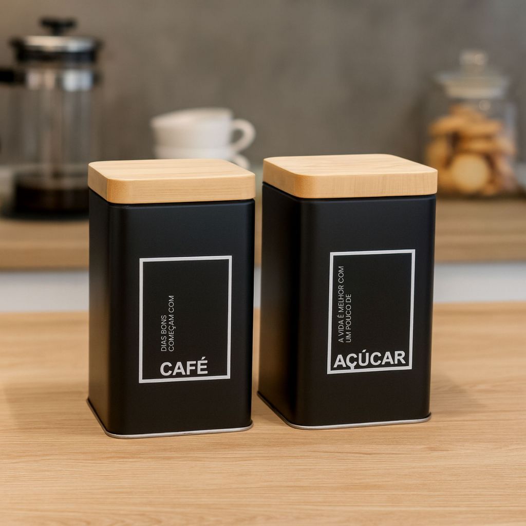 O Conjunto de Latas para Café e Açúcar é ideal para quem busca organização e praticidade na cozinha. Produzidas em metal resistente com acabamento sofisticado na cor preta, preservam os alimentos por mais tempo e mantêm o sabor original. Além de funcionais, as peças agregam um toque moderno e elegante à decoração do ambiente ----------------------------------------------------------------------------------- [ESPECIFICAÇÕES DO PRODUTO] Altura: 15 cm Largura: 9 cm Comprimento: 9 cm Material: Metal Contém: 1 Lata para Café e 1 Lata para Açúcar Obs¹: Todas as medidas são APROXIMADAS. ------------------------------------------------------------------------------------------- Ficou alguma dúvida? Entre em contato conosco, responderemos o mais rápido possível! Aproveite para conhecer mais de nossa Loja. Sempre buscando produtos inovadores comprometidos a levar mais praticidade para afazeres domésticos!