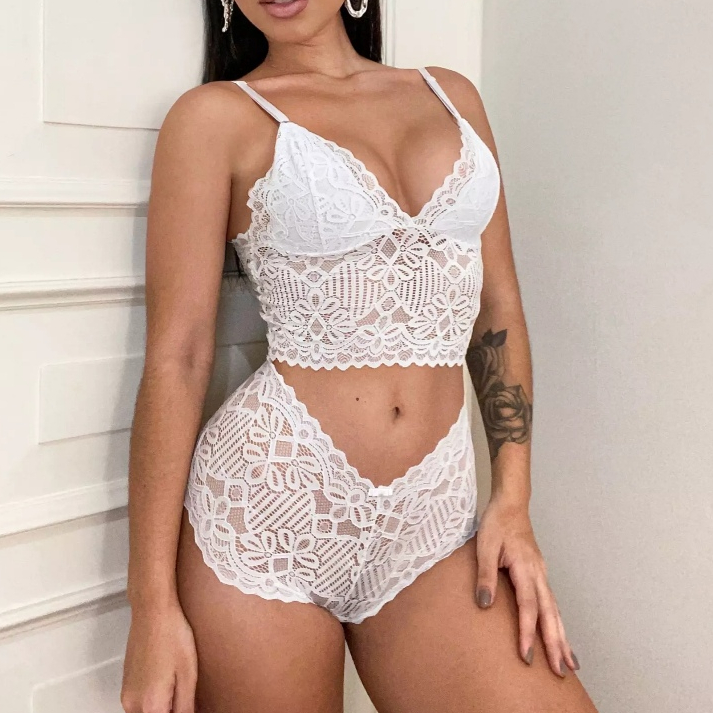 Conjunto de Lingerie Feminino de Renda Sensual Calcinha e Sutia sem Bojo Moda Intima