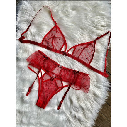 Conjunto De Lingerie Sexy Feminino S/ Bojo Em Renda com Liga e Perneira