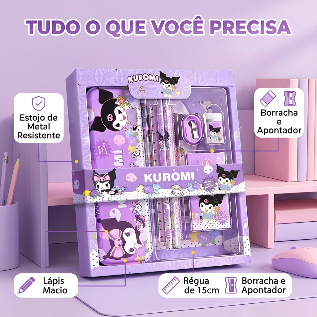 - ENVIO IMEDIATO - Design adorável da Kuromi: Este conjunto de lápis apresenta a adorada personagem Kuromi da Sanrio, tornando-o um presente irresistível para os fãs. Conjunto completo: Inclui 2 lápis e 6 giz de cera com diferentes desenhos da Kuromi, garantindo uma variedade encantadora para colorir, escrever ou rabiscar. Materiais de alta qualidade: Fabricados com madeira e grafite de primeira qualidade, estes lápis proporcionam uma escrita suave e garantem durabilidade. Versatilidade: Embora tenha sido projetado pensando nas meninas, este conjunto de lápis Kuromi pode ser apreciado por meninos e adultos que gostam de artigos de papelaria fofos e divertidos.