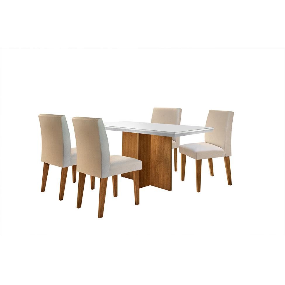 Conjunto de Mesa de Jantar Berlim II com Tampo de Vidro Off White e 4 Cadeiras Grécia Veludo Creme