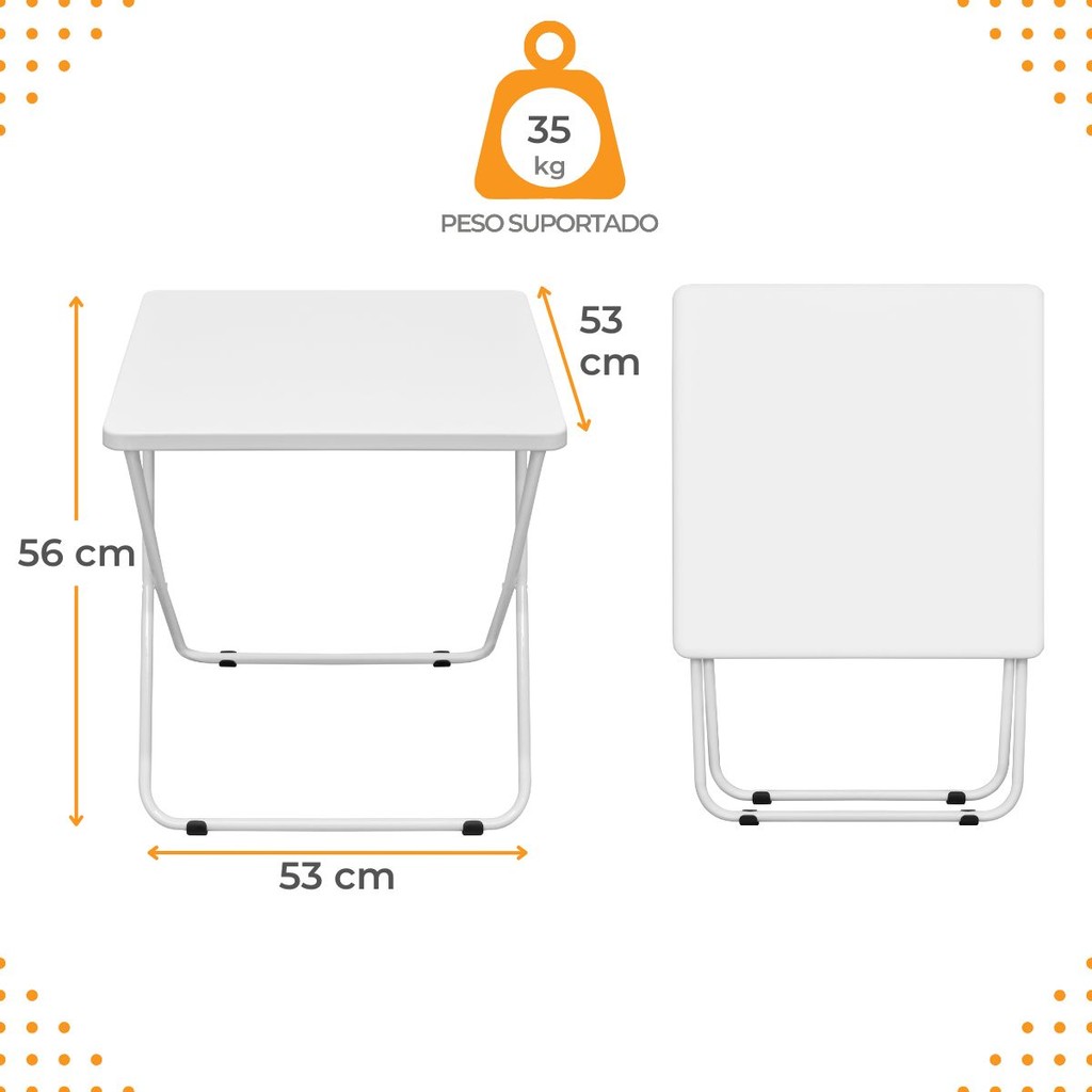 Bem-vindo à UTILITY Somos uma loja online especializada em utilidades PET, utilidades Domésticas e produtos Pegue e Faça você mesmo! Entrega rápida, qualidade garantida e compra 100% segura Descrição da oferta: - 01 Mesa Dobrável Infantil- 02 Cadeiras Dobráveis Infantis Benefícios: - Alta durabilidade (pintura anti ferrugem) - Estrutura reforçada - Cantos arredondados - Fácil de guardar - Pés com ponteiras de polipropileno que evitam riscar o chão Especificações: - Cores disponíveis: Branco, Azul e Rosa - Material da estrutura: Aço carbono com tratamento antiferrugem - Peso suportado pela mesa: 35 kg - Peso suportado pelas cadeiras: 50 kg Mesa aberta: - Altura: 56 cm - Largura: 53 cm - Profundidade: 53 cm - Peso 2,500 kgMesa fechada: - Altura: 76,5 cm - Largura: 53 cm - Profundidade: 53 cm Cadeira aberta: - Altura: 56 cm - Largura: 33 cm - Profundidade: 37 cm - Altura até o assento: 30,5 cm - Peso: 1,440 kgCadeira fechada: - Altura: 74 cm - Largura: 33 cm - Profundidade: 37 cm Embalado: - Altura: 77,5 cm - Largura: 67 cm - Profundidade: 10 cm - Peso: 6,200 kg Indicado para: - Crianças acima de 2 anos Garantia:- 6 meses por defeito de fabricação Entrega: Assim que recebemos seu pedido, fazemos a postagem em até 24h e enviamos o rastreio para acompanhamento do status de entrega. Ficamos à disposição! Equipe Utility!