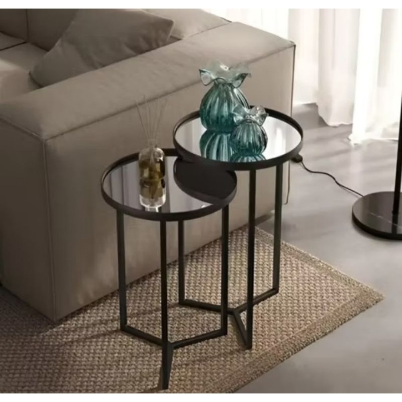Este conjunto inclui 2 mesas laterais,sendo elas: 1 mesa média medindo 61 cm altura X 30 cm largura (diâmetro) 1 mesa baixa medindo 51 cm altura X 30 cm largura (diâmetro) * Material de estrutura: Ferro/ pintura eletrostática *Cores disponíveis: preto * superfície do Tampo:espelho Vantagens de comprar conosco: -EMBALAGEM: Trabalhamos com um sistema de embalagem muito reforçado, feito com muito carinho e dedicação! ENVIOS: Nossos envio são efetuados em menos de 24 horas após a confirmação da compra! ATENDIMENTO POS COMPRA: temos uma equipe especializada e dedicada em atendimento pós venda! Qualquer dúvida estamos em contato pelo chat, será um prazer lhe ajudar com suas dúvidas!!!