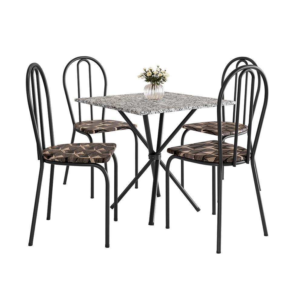 Conjunto de Mesa Quadrada com Tampo Granito e 4 Cadeiras Léia Revestimento Sintético Preto e Palha