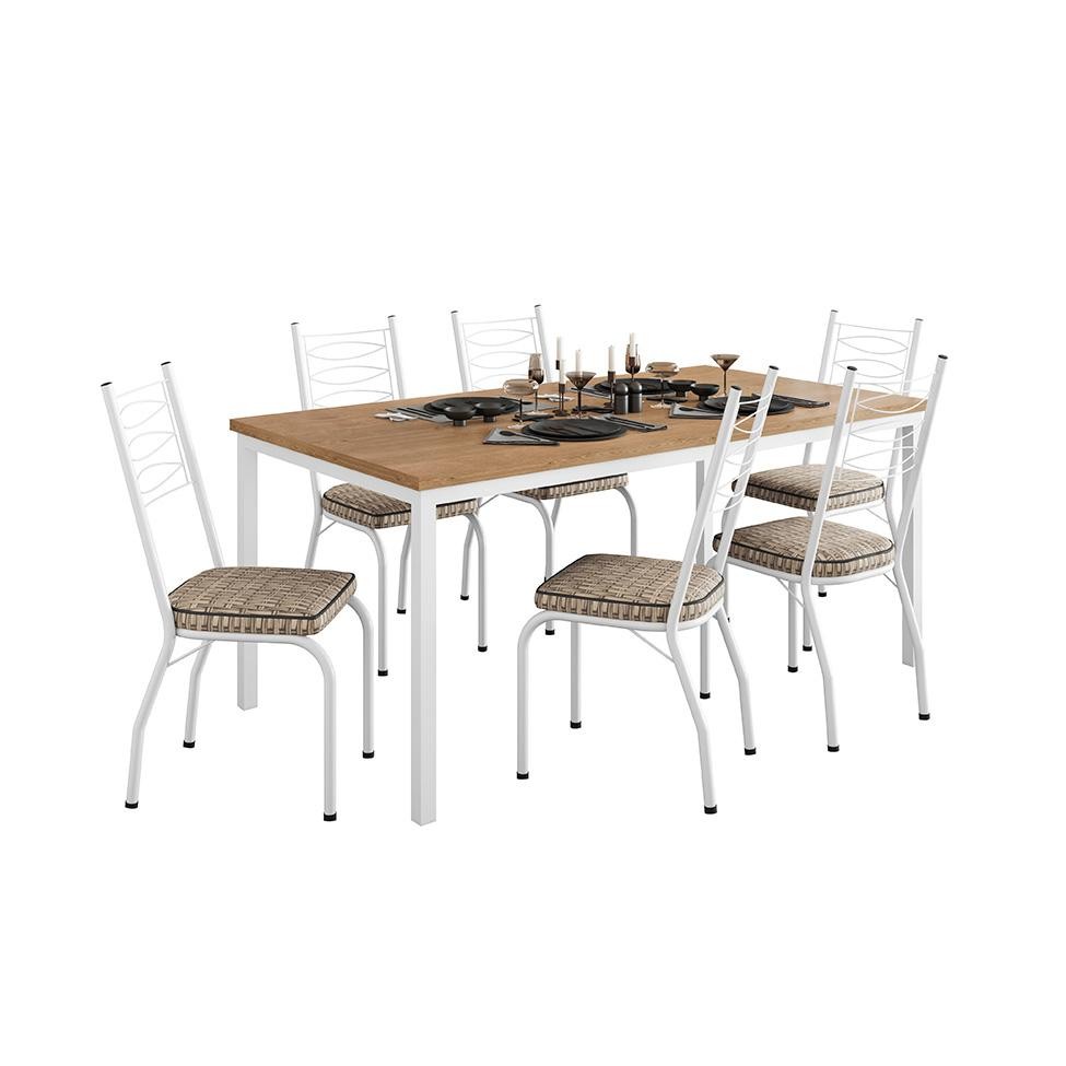 Conjunto de Mesa Retangular com Tampo de MDP Amadeirado e 6 Cadeiras Adriana Revestimento Sintético Marrom e Branco