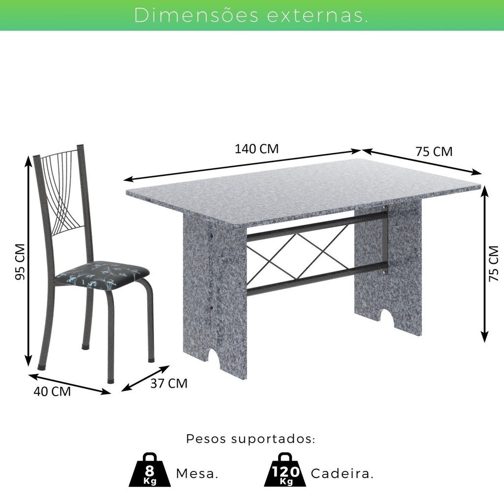 Conjunto de Mesa Tampo de Granito Ocre com 6 Cadeiras Lorena Yescasa Preto Floral/Mart Prata