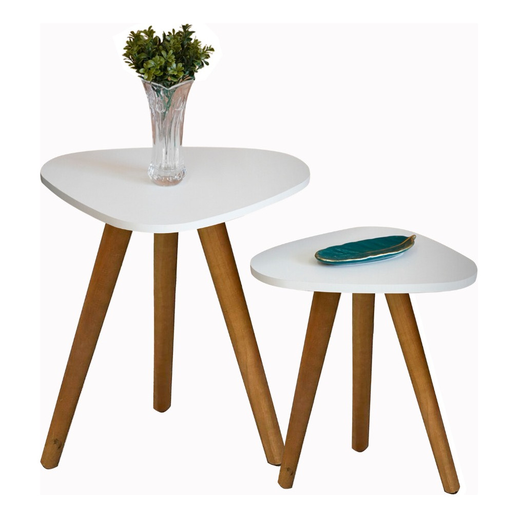 Conjunto de Mesinhas Canto E Apoio Pe Palito Tripe Porta Quadros E Objetos Tampo Orgânico