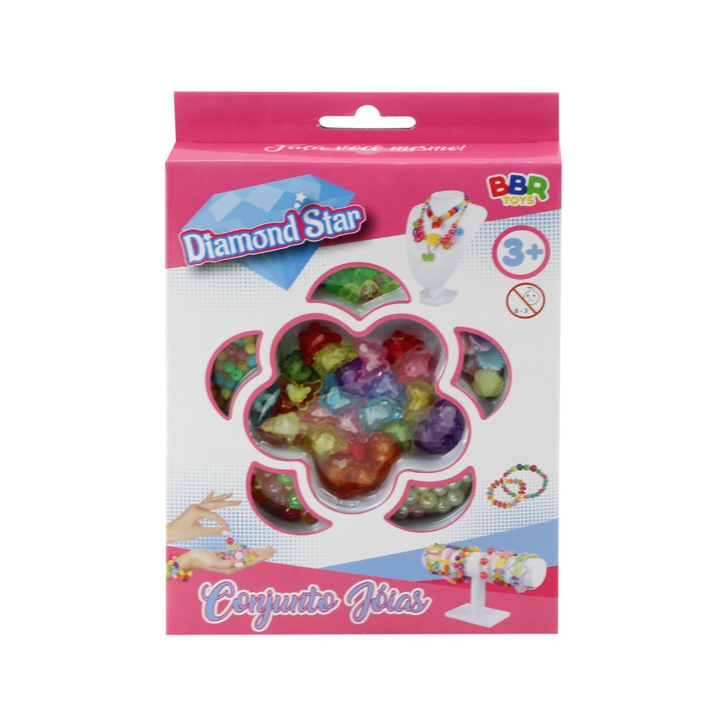 O anúncio contém: 88 peças; Perguntas frequentes: Posso escolher os modelos de miçanga? Não, elas vêm sortidas; Pode molhar? Vem elástico separadamente? Não, apenas o que acompanha o produto; Vem com suporte? Não; Faça você mesma seus próprios acessórios, com pecinhas super coloridas e divertidas. Chame suas amigas para esta diversão. Benefícios: Peças coloridas e Divertidas; Já vem com elástico; Produto atóxico; Informações: Idade Mínima Recomendada Pelo Fabricante: +3; Dimensões Aproximadas do Produto: 1cm a 2 cm; Material: Plástico e elástico; Cor: Sortido; Elástico: 2 metros; Fabricante: BBR Toys; - Produto novo e em estoque; - As cores do tecido ou produto podem variar de acordo com o lote de fabricação; - Todos os produtos têm seguro contra extravio.