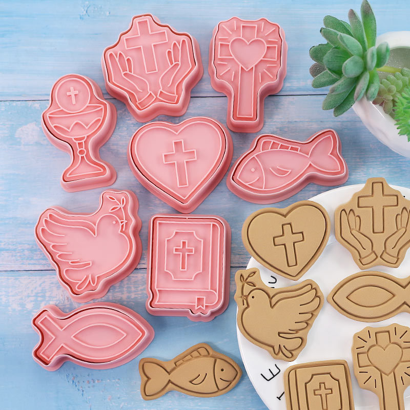 Conjunto de Moldes de Biscoitos de Comunhão de Páscoa com Designs 3D - 8 Peças para Eventos Religiosos
