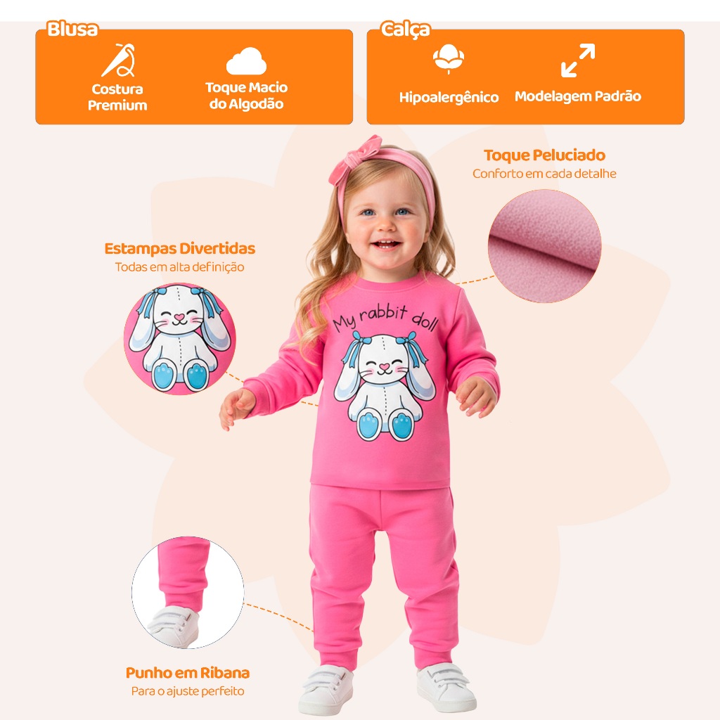 | Conjunto de Moletom Infantil Bebê Menina Inverno Blusa e Calça Mang... este produto | R$ 39,90 | 35% | 5.0/5 | — |