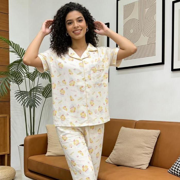 Conjunto de Pijama Americano Feminino Manga Curta e Calça Estampas Fofas Tendência 2026 Conforto Premium
