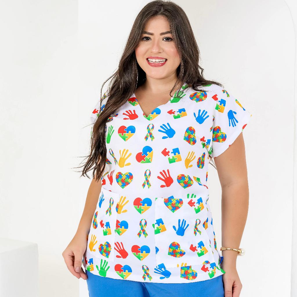 Conjunto de Pijama Hospitalar estampa Autismo.