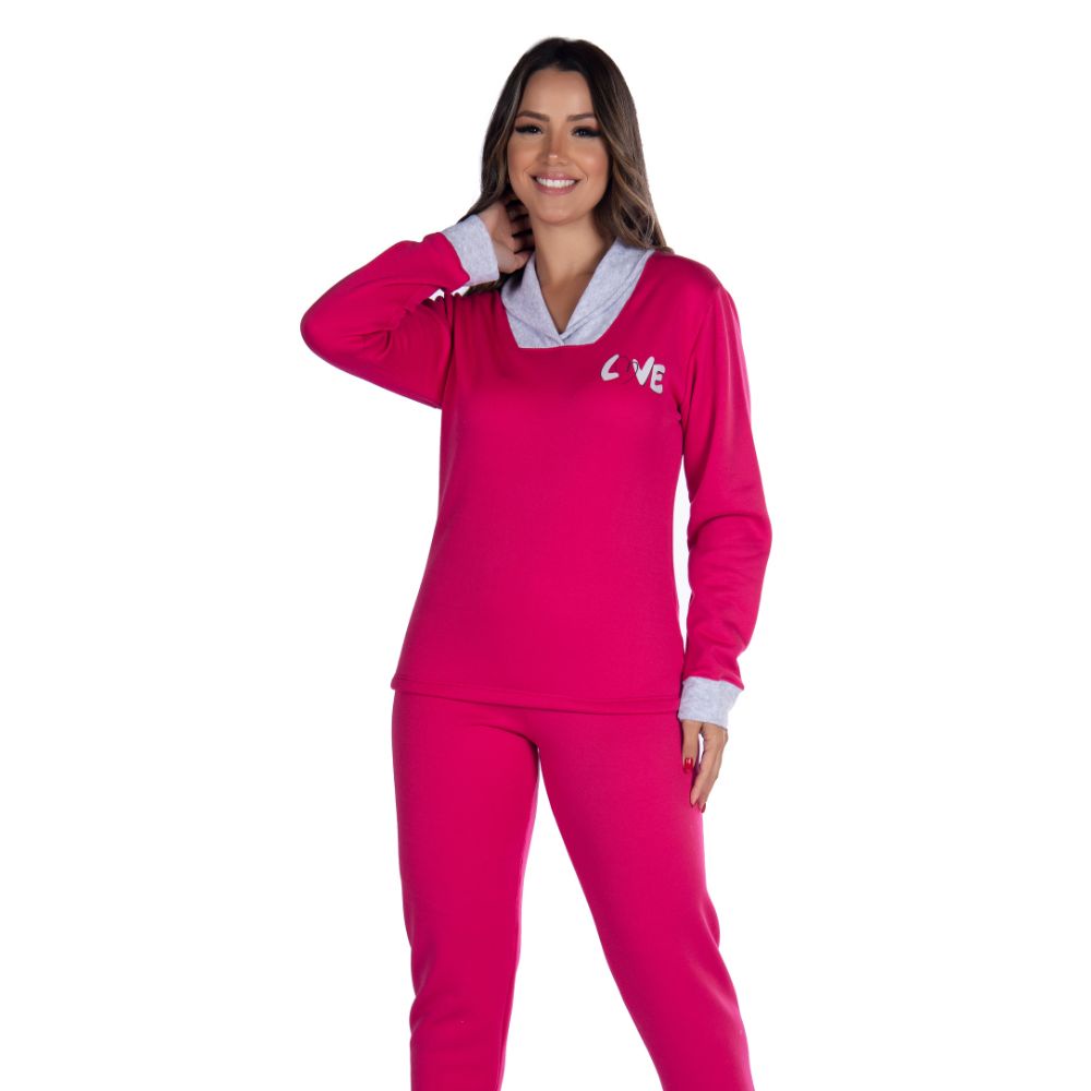 Conjunto de Pijama Victory Adulto Feminino Moletinho Forrado Manga Longa Calca Quentinho Estampado