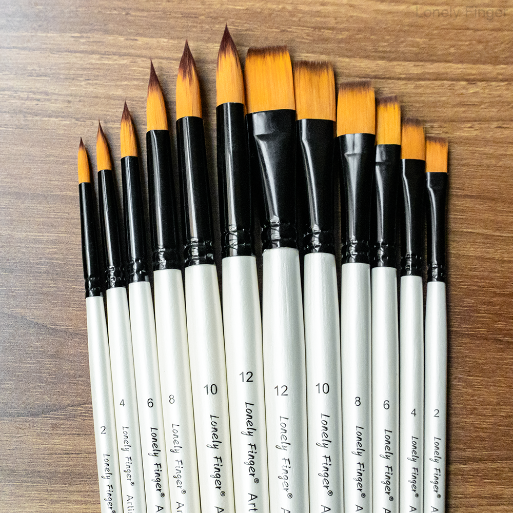 Conjunto de Pincéis Lonely Finger com Ponta Fina e Plana, 12 Peças para Pintura Acrílica, Óleo, Aquarela e Guache,
