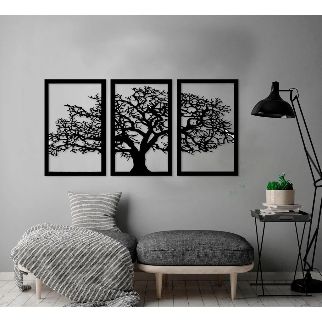 Conjunto De Placas Decorativas Quadro Vazado Arvore Da Vida Mdf 3mm