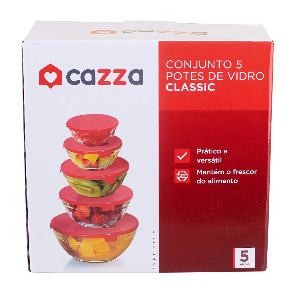 Conjunto de Potes de Vidro Cazza com Tampa Plástica 5 Peças