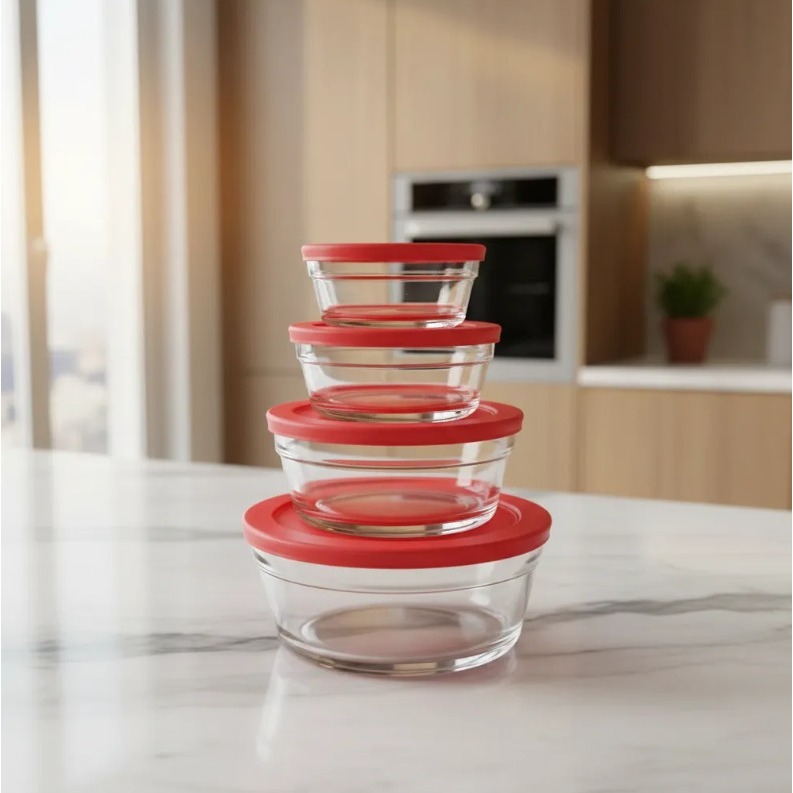 Conjunto de Potes de Vidro com Tampa – 5 Peças | Herméticos e Resistentes