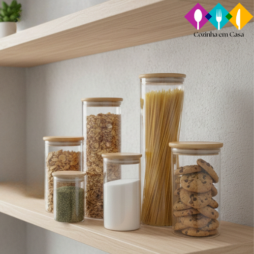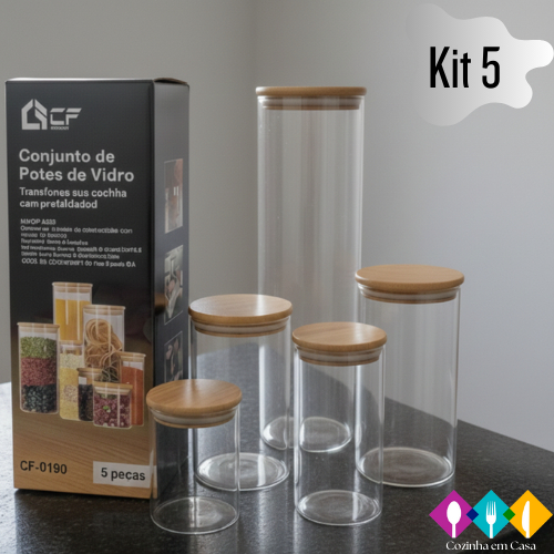 Conjunto de Potes Herméticos com Tampa de Bambu - 3/4/5 peças