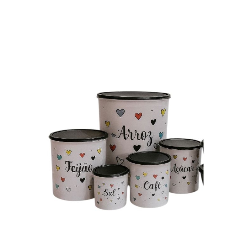 Conjunto de Potes Mantimentos 5 Peças adesivado Love.