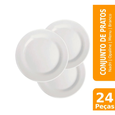 Conjunto de Pratos Rasos Nadir - Vidro Branco Opaline Menu 24 peças