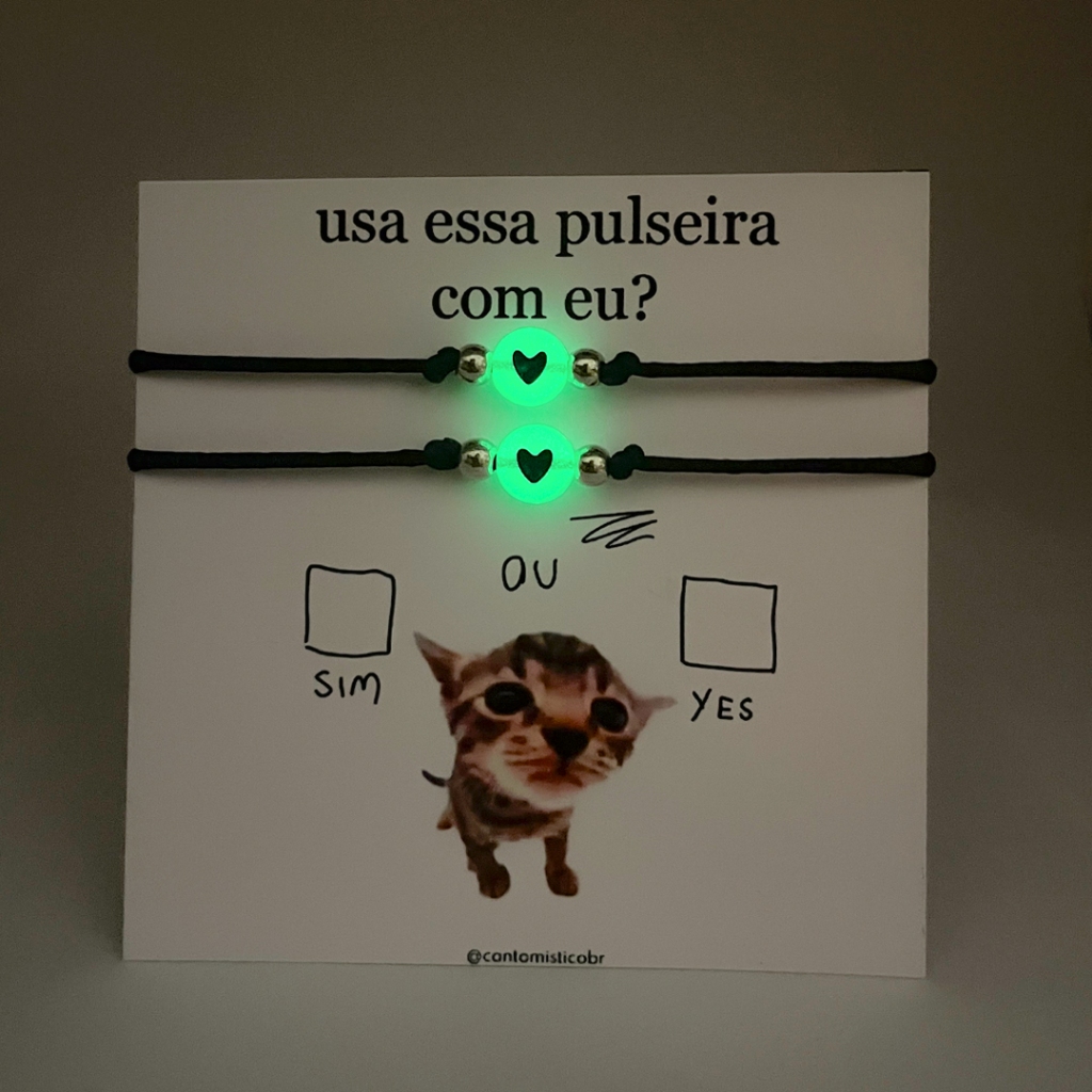 Conjunto de Pulseiras de Casal/Amizade Assinatura Gatinho Brilha no Escuro