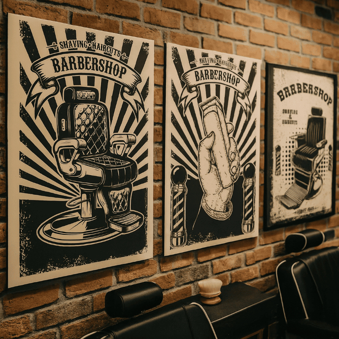 Conjunto de Quadros Barbearia BarberShop Grande Acompanha Fita Dupla Face