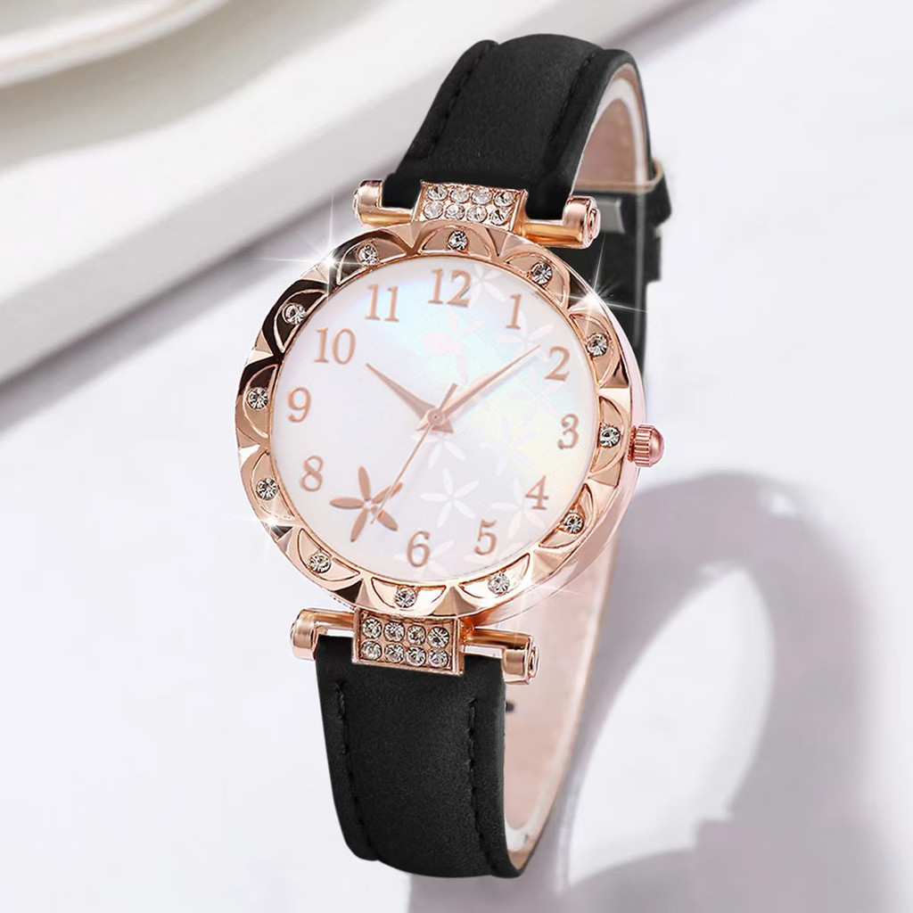 Conjunto De Relógio Com Pulseira De Couro De Quartzo Estilo Coreano , 6 Peças , Combinação De Joias Para Mulheres , Uso