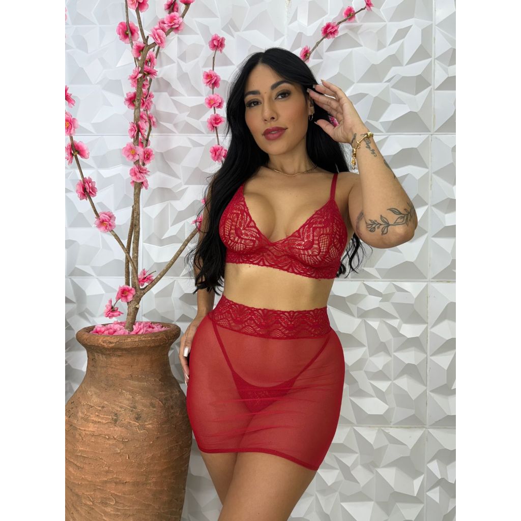 O Conjunto Passion é a peça perfeita para quem deseja unir sensualidade e elegância. Produzido em renda e tule vermelho, branco ou preto transparente, ele valoriza as curvas de forma ousada e sofisticada. O top em renda traz um toque delicado, enquanto a saia de tule com cintura rendada adiciona charme e sensualidade extra. Ideal para momentos especiais ou para mulheres que gostam de se sentir poderosas no dia a dia, este conjunto é pura paixão traduzida em lingerie. 👉 Garanta já o seu e desperte olhares com toda a intensidade do vermelho.