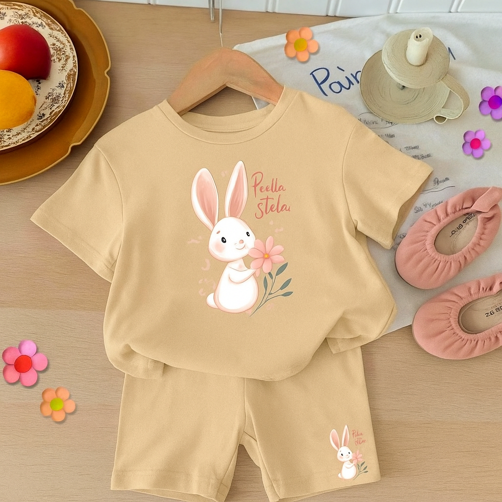 Conjunto de short e camiseta infantil menina bebê estampa premium coelhinha