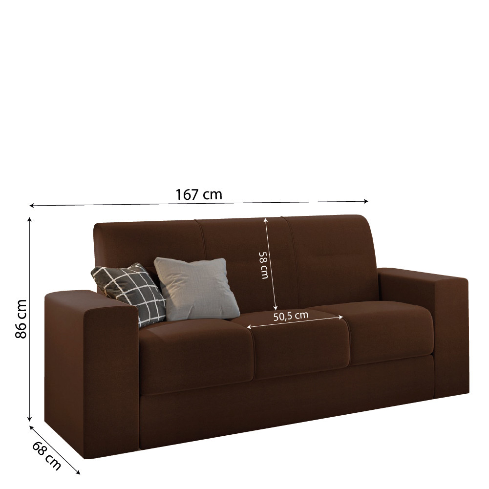 O Sofá Leon de 2 e 3 Lugares é a escolha perfeita para quem busca conforto, estilo e praticidade em um só móvel, com design moderno e compacto, ele se adapta facilmente a diferentes ambientes. Oferece máximo conforto graças à espuma D18 no assento, ao tecido veludo de toque macio e às percintas elásticas, que proporcionam sustentação e flexibilidade na medida certa. A base conta com pés em PVC, garantindo praticidade no dia a dia, além de suportar até 120 kg por pessoa. O encosto removível facilita o transporte e a instalação em espaços menores. Perfeito para relaxar ou reunir a família e os amigos com muito mais conforto! MEDIDAS: Medidas 2 Lugares: A = 86 cm L = 123 cm P = 68 cm Medidas 3 Lugares: A = 86 cm L = 167 cm P = 68 cm MEDIDAS DOS PÉS: A = 1,5 cm L = 3 cm PESO 2 LUGARES: 28,50kg PESO 3 LUGARES: 32kg PESO SUPORTADO: 120kg por pessoa MODELO: Conjunto de Sofá 2 e 3 Lugares Leon Veludo MARCA: Mamflex MATERIAL DA ESTRUTURA: Madeira de eucalipto TECIDO: Veludo PERCINTAS: Elásticas ASSENTO: Espuma D18 QUANTIDADE DE LUGARES: 5 BRAÇO: Fixo ENCOSTO: Removível, em espuma D16 PÉS: 8 unidades, em PVC POSSUI RODÍZIOS: Não ITENS INCLUSOS: 1 Sofá 2 Lugares e 1 Sofá 3 Lugares OBSERVAÇÃO: Almofadas decorativas não estão inclusas VALE A PENA SABER: A tonalidade de cor pode variar de acordo com o lote do fabricante CONTEÚDO DA EMBALAGEM: 2 Volumes GARANTIA: 3 Meses Importante sobre a entrega: A entrega é realizada até a portaria ou porta de entrada do endereço indicado, desde que o acesso seja permitido. Para locais com portaria, a entrega será feita no piso térreo. Não realizamos montagem, desmontagem, transporte por escadas ou içamento. É responsabilidade do cliente verificar se as dimensões do produto são compatíveis com portas, elevadores e corredores. Evite imprevistos: confira todos os detalhes antes de concluir sua compra.