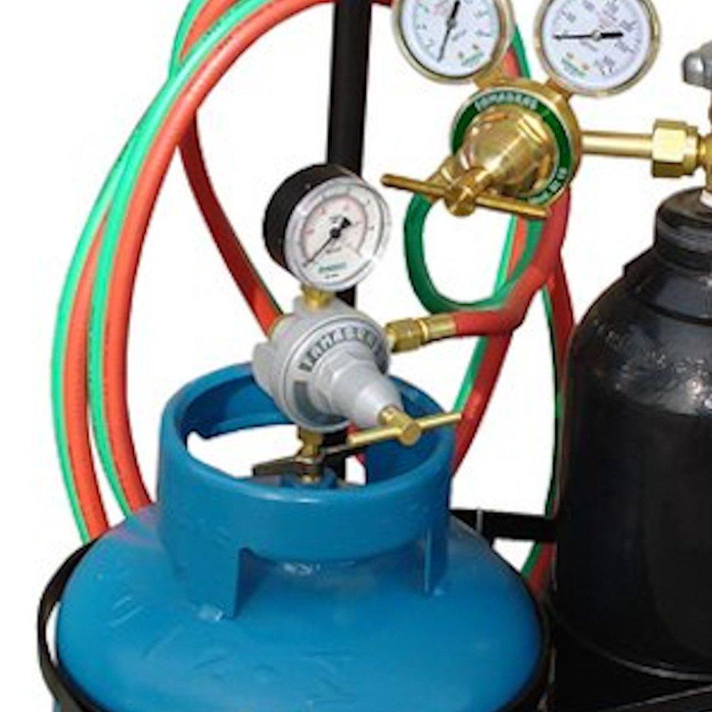 Equipamento de solda portátil Ideal para uso em setores de manutenção industrial e refrigeração Composto de: - 01 Cilindro de Oxigênio industrial com 7,3 lts. (1m) - 01 Cilindro de GLP 5kg - 05 Metros de mangueira dupla reforçada com 1 par de válvulas anti-retrocesso com maçarico de solda - 01 Regulador de pressão com 01 manômetro (GLP): :: 0 7 Kgf/cm :: 0 100 psi - 01 Regulador de pressão com 02 manômetros (Oxigênio): :: 0 16 Kgf/cm :: 0 315 Kgf/cm - 02 Extensões Garantia: 3 meses de garantia legal por lei, contando a partir da data de emissão da Nota Fiscal de Venda Marca: FAMABRAS
