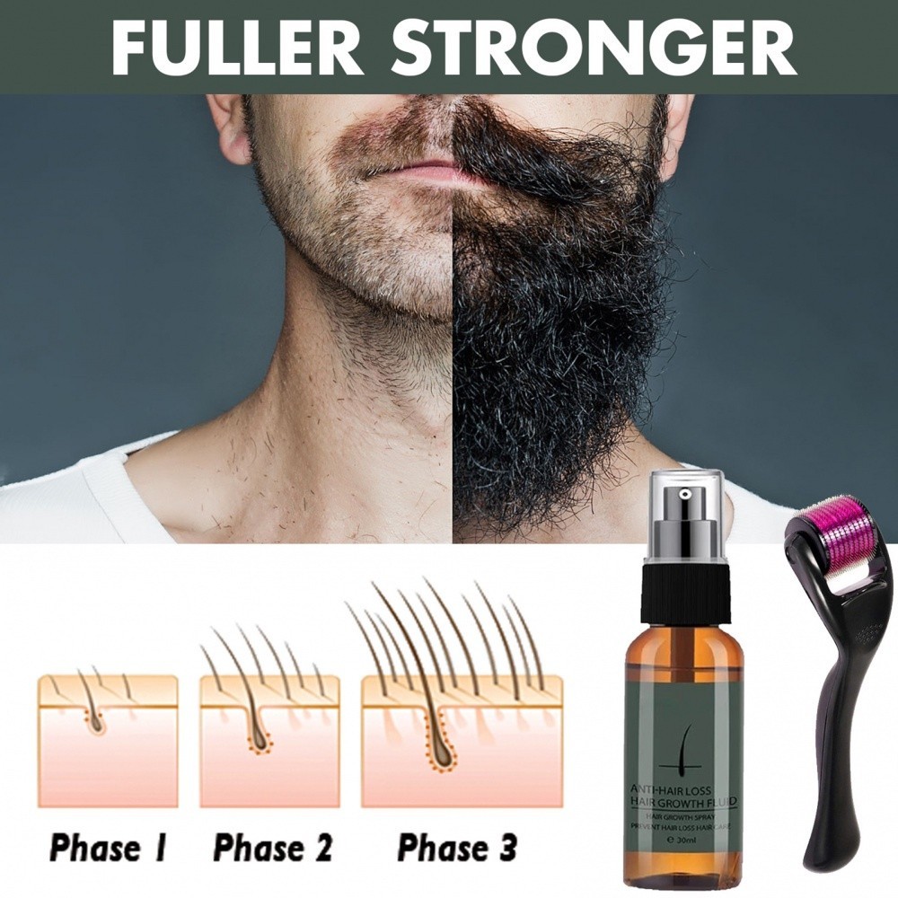 Conjunto De Spray De Crescimento De Barba Para Aumento Do Bigode Masculino Hidratação Com Rolo Líquido Promovedor