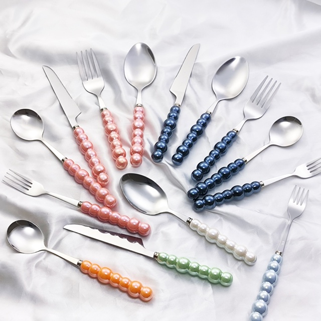Conjunto De Talheres E De Cerâmica Em Aço Inoxidável Colher Garfo Estilo Pérola Elegante Garfos Ouro De Chá