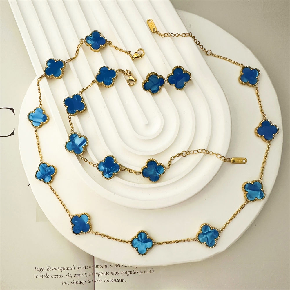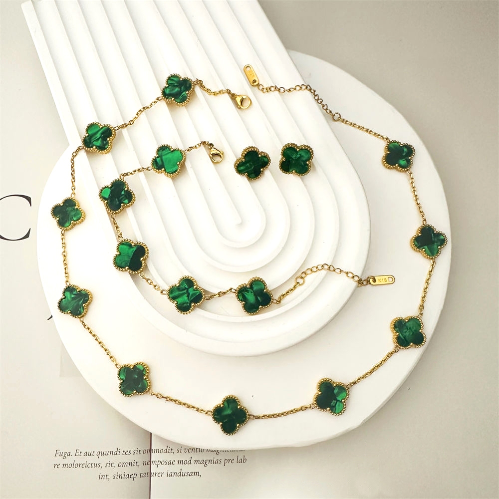 Conjunto de trevo da sorte colorido (conjunto de 3 peças) | Banhado a ouro 18K | Aço inoxidável de 13 mm | unissex