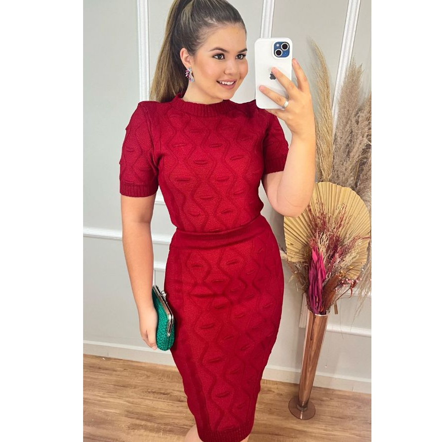 Conjunto De Tricot Feminino Blusa e Saia Alto Relevo Moda Evangélica