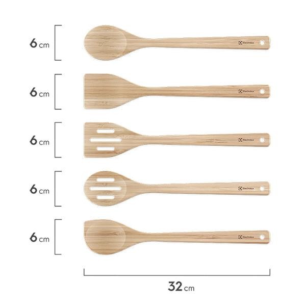 Conjunto de Utensílios de Bambu Sua cozinha funcional e com estilo Toda a beleza dos itens de bambu para deixar a sua cozinha ainda mais prática, organizada e cheia de charme! Perfeitos para todos os momentos. Do preparo até a hora de servir. Estilo sustentável Peças feitas de bambu, material sustentável e altamente resistente. Tendência em design, contém agentes bactericidas naturais que previnem o aparecimento de bactérias e maus odores. Multiuso O conjunto traz 5 utensílios diferentes e 1 suporte para facilitar o preparo de diversos pratos e receitas. Organiza e decora Com design minimalista, possui porta-utensílios que facilita a visualização dos itens e mantém a cozinha sempre bonita e organizada. Informações técnicas (C x L x A) 01 Colher 6 x 1 x 32 cm 01 Colher vazada 6 x 1 x 32 cm 01 Espátula 6 x 1 x 32 cm 01 Espátula vazada 6 x 1 x 32 cm 01 Colher espátula 6 x 1 x 32 cm 01 Porta-utensílios 9 x 9 x 14,5 cm