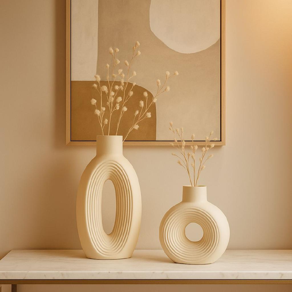 Conjunto de Vasos Decorativos Minimalistas Para Sala, Quarto e Estante em Gesso Marfim 19/16cm